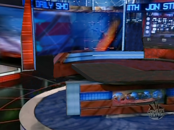 Painstakingly pieced together from individual frames of Comedy Central’s The Daily Show and The Colbert Report, backgrounds and sets were constructed for this Numonium feature.