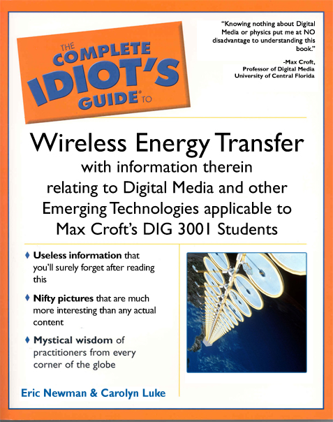 Developed for the Numonium feature, “The Complete Idiot's Guide to Wireless Energy Transfer with Information therein relating to Digital Media and other Emerging Technologies Applicable to Max Croft's DIG 3001 Students. Delivered with the accompanying CD.