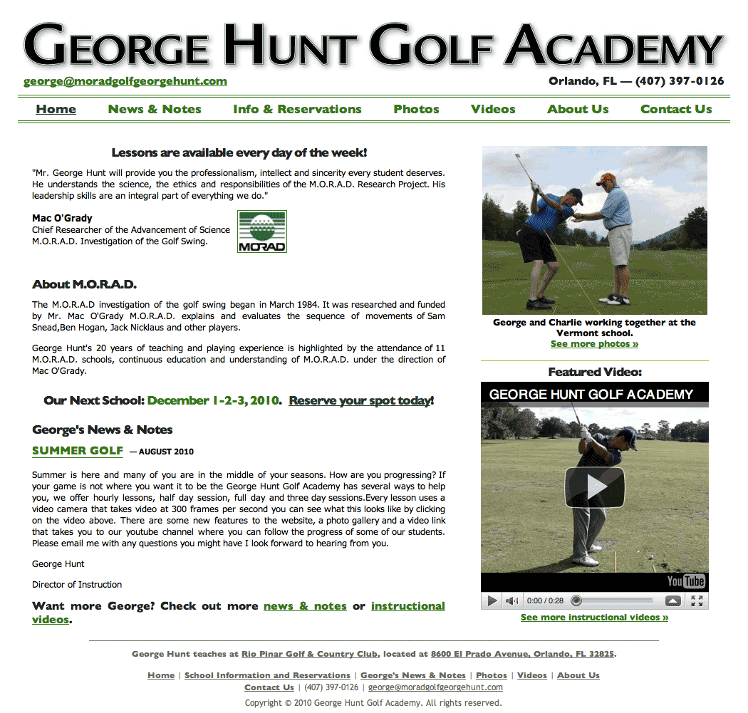 Golf schools and personal athletic instruction in Orlando, FL. Performed all design, development, and search engine optimisation (SEO). Created an administration area where any content on the site may be dynamically changed. Google “MORAD Golf” to test out our SEO.