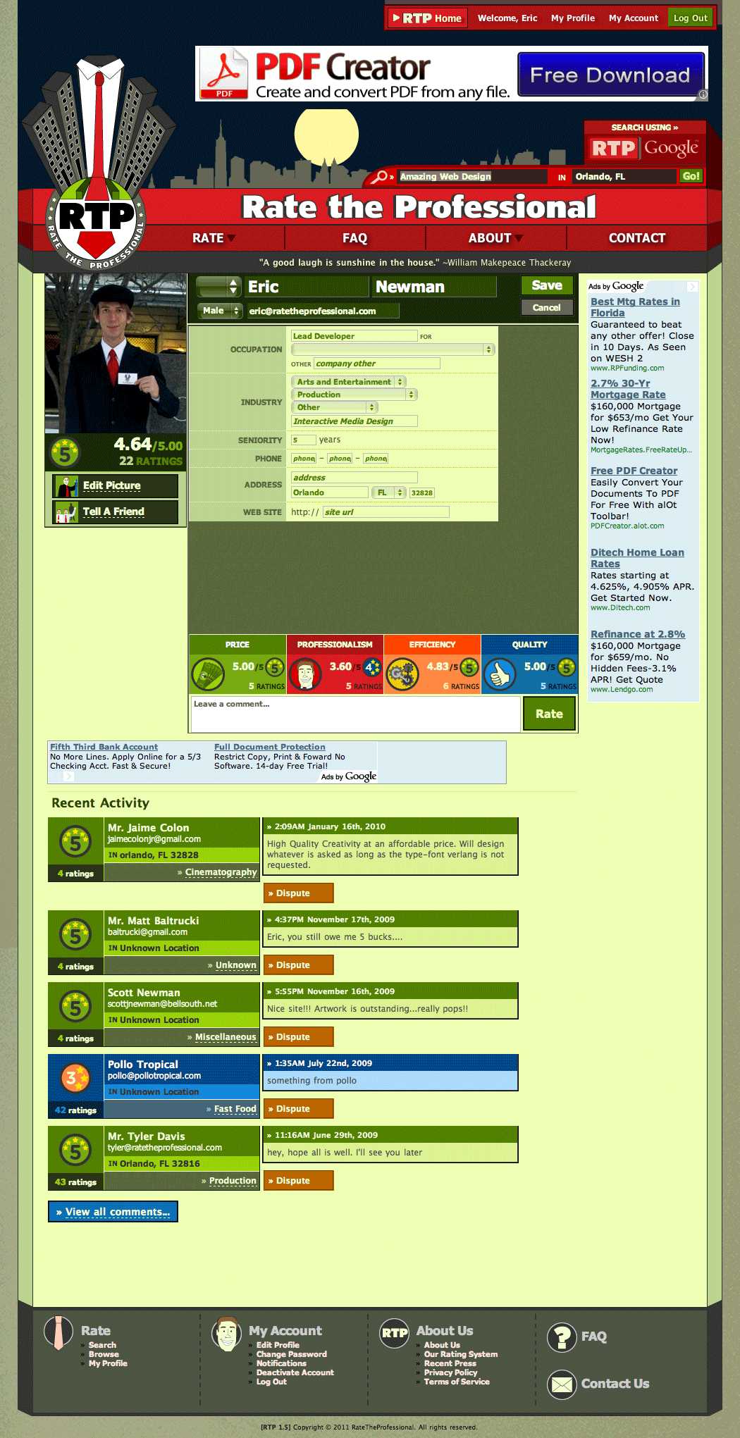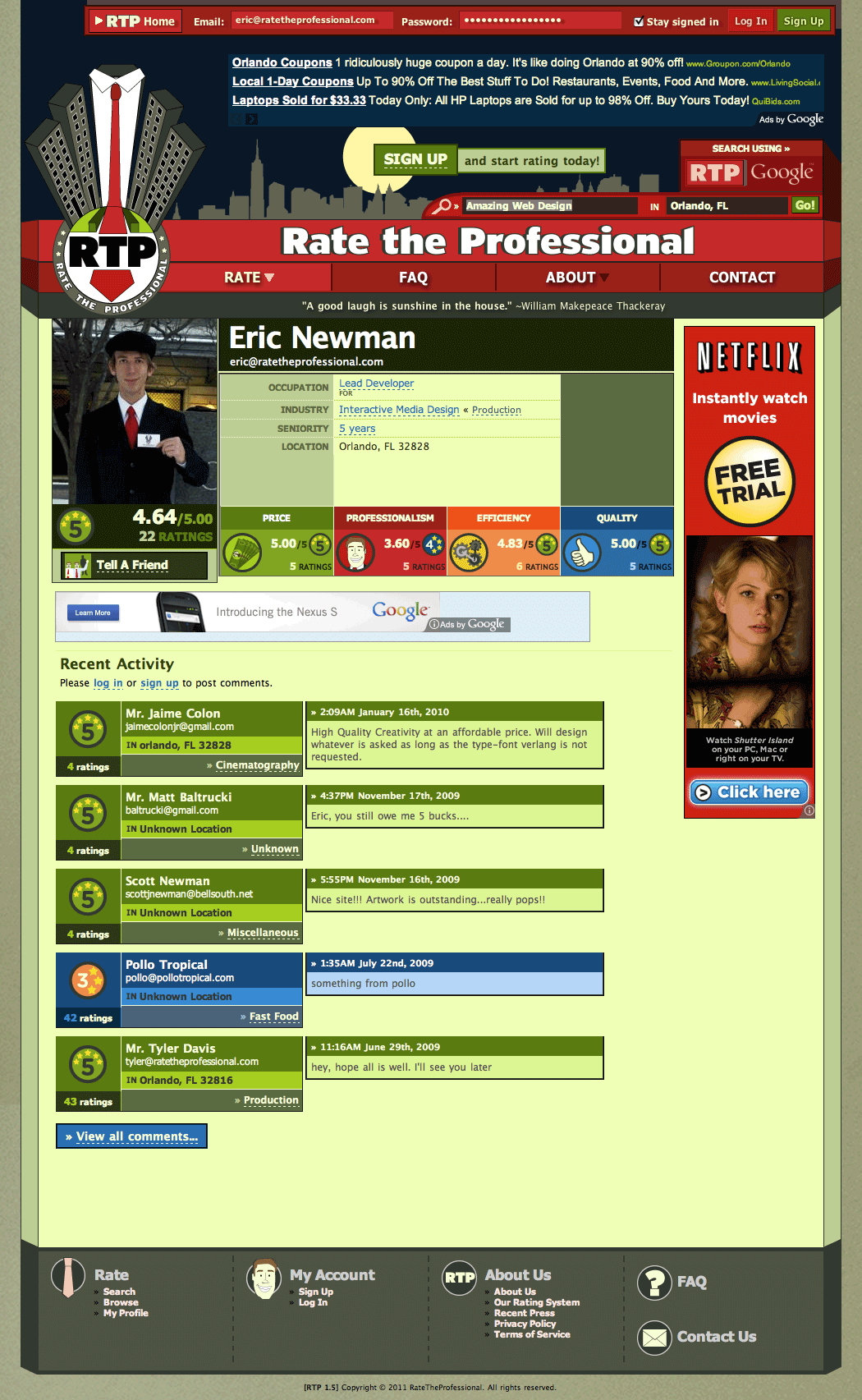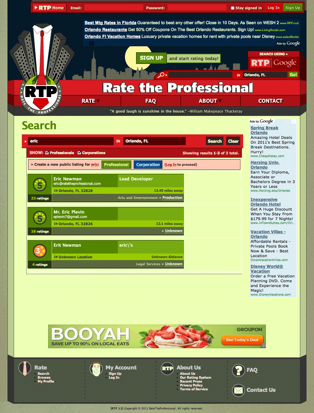 A service which rates professionals and corporations across the United States. Performed all development, server administration, and design consultation. This service also has an administration area which aggregates and displays usage statistics.