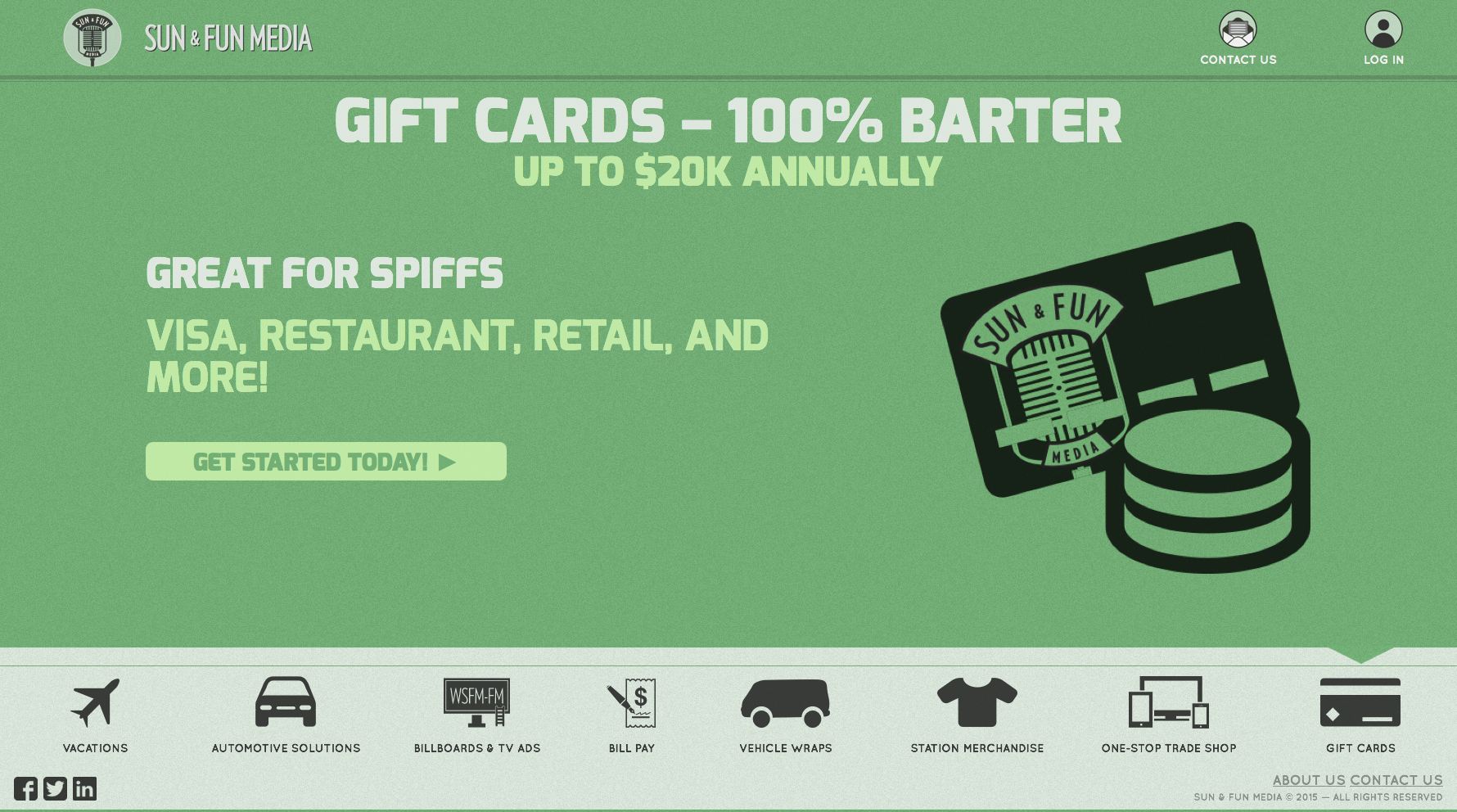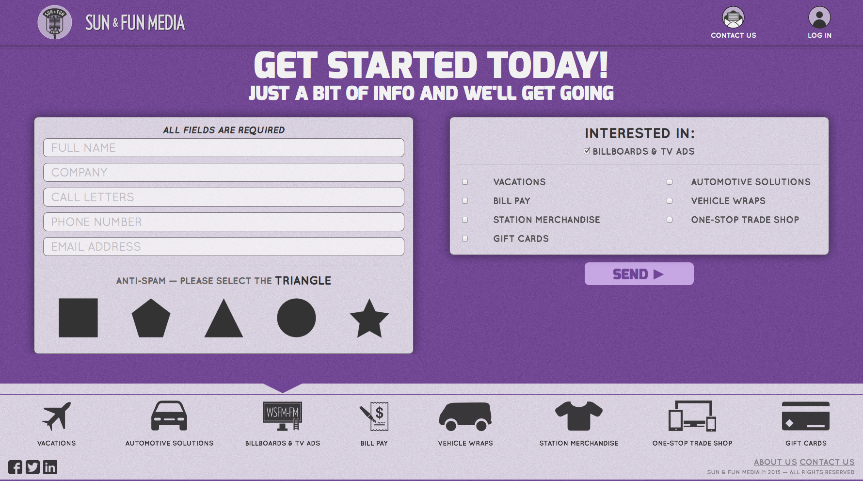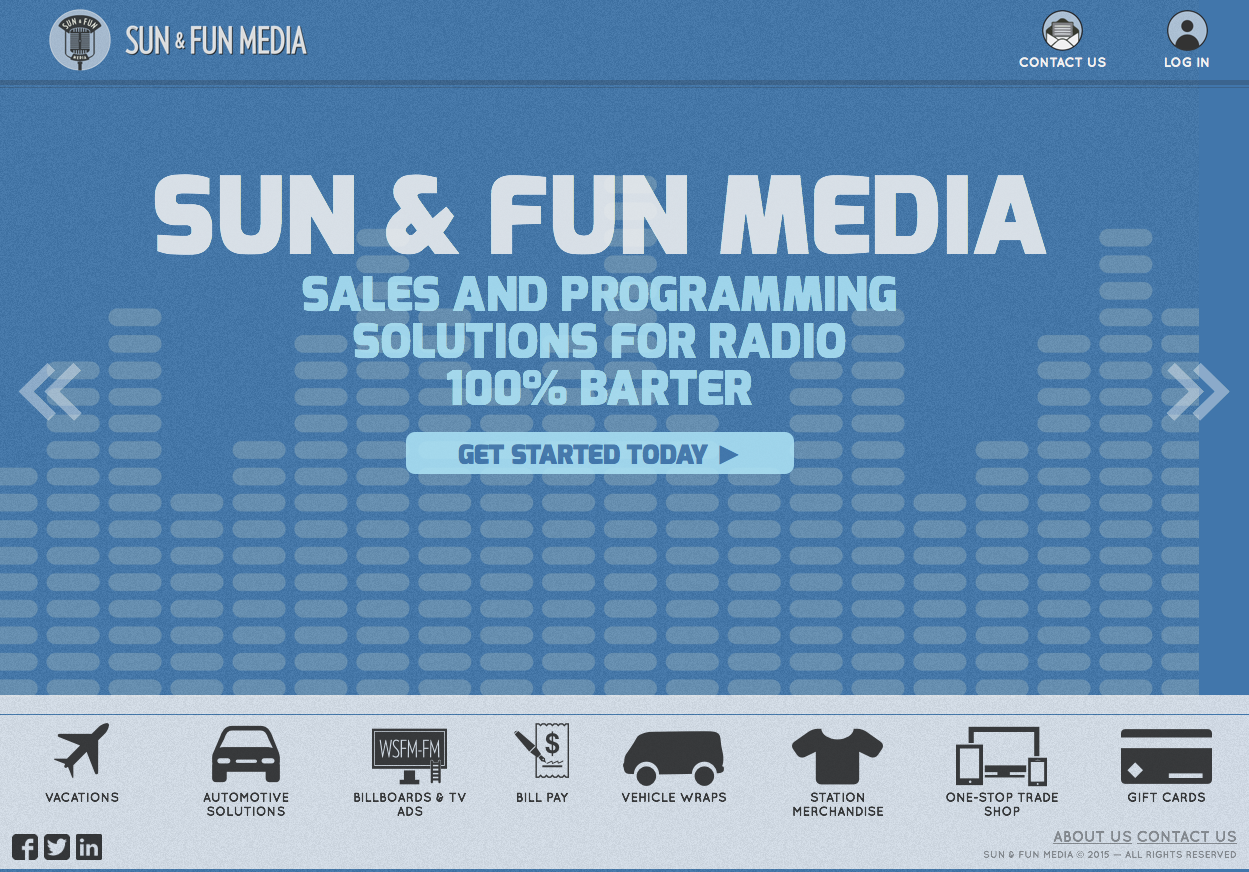 A company specializing in 100% barter ad placement with radio stations. Sun & Fun Media received the full spectrum of services we offer - everything from branding redesigns, to complete customized content managers (CMS), to a completely responsive and pixel-agnostic front-end, as well as optimization and Pictcha™ anti-spam form technology.