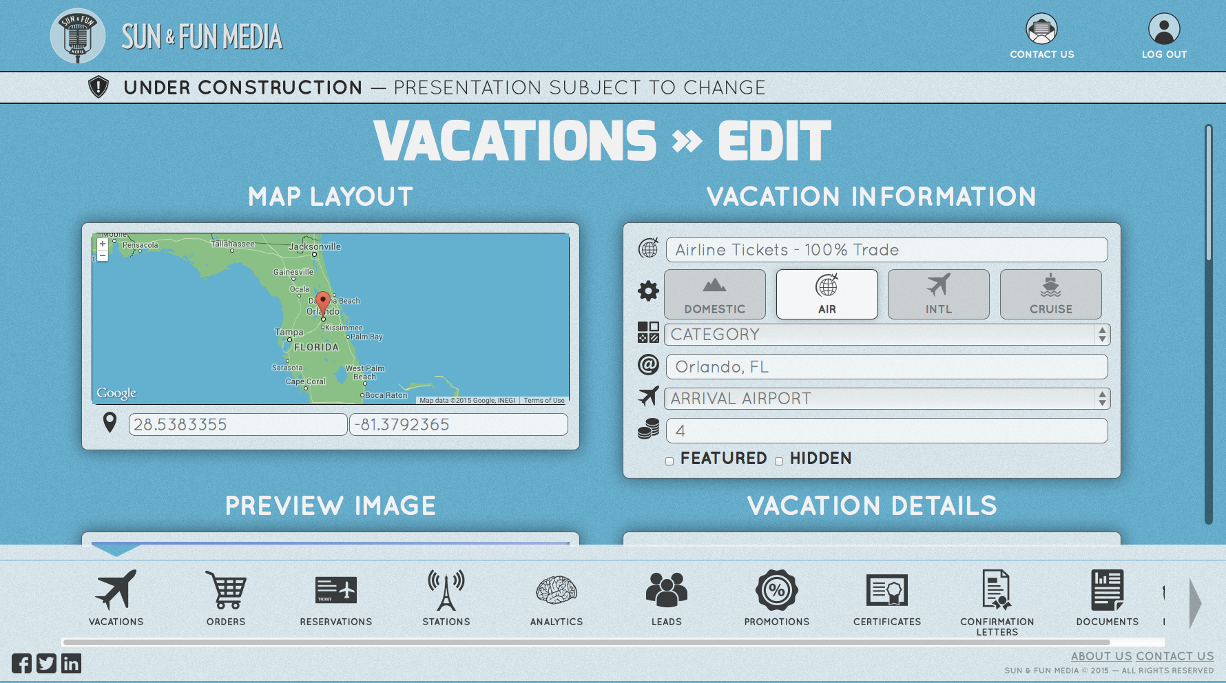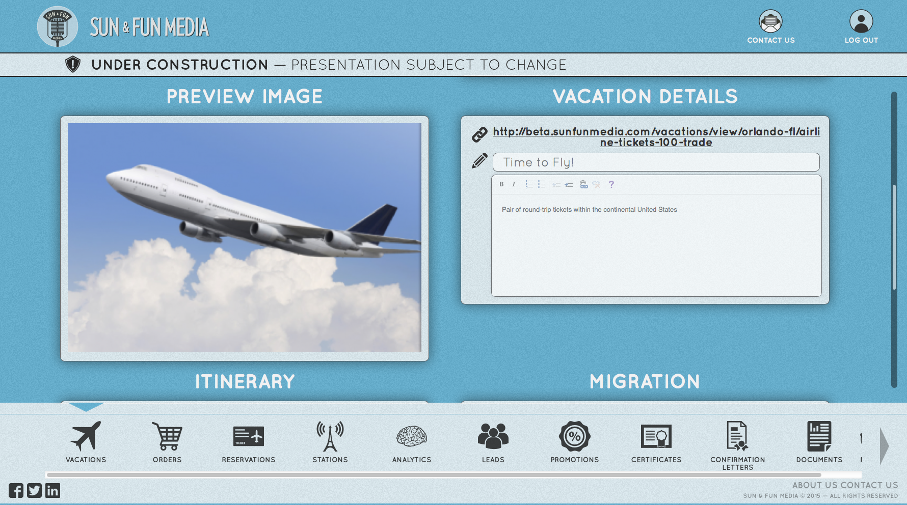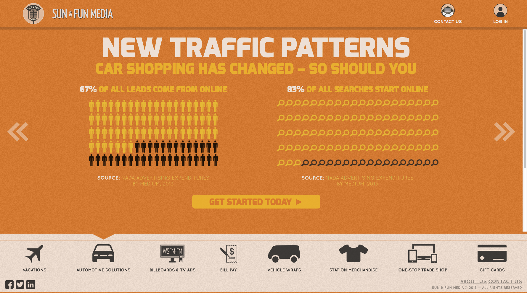 A company specializing in 100% barter ad placement with radio stations. Sun & Fun Media received the full spectrum of services we offer - everything from branding redesigns, to complete customized content managers (CMS), to a completely responsive and pixel-agnostic front-end, as well as optimization and Pictcha™ anti-spam form technology.